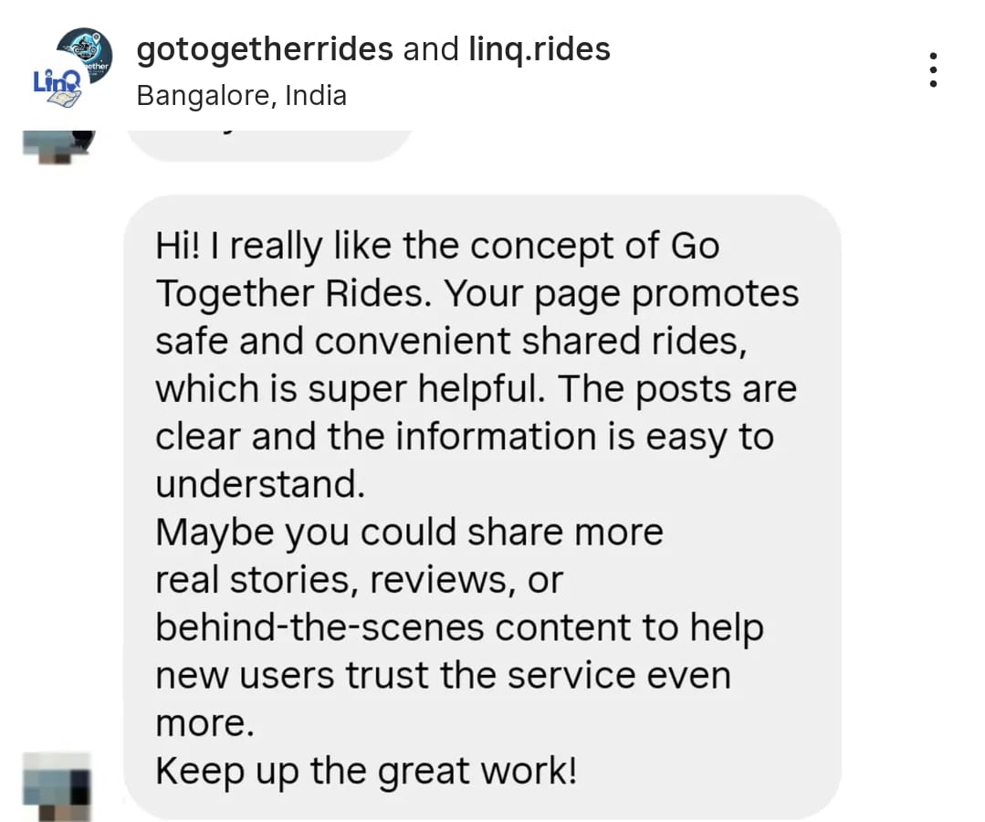 “I really liked the Go Together Ride platform. Great idea for daily commuters.”